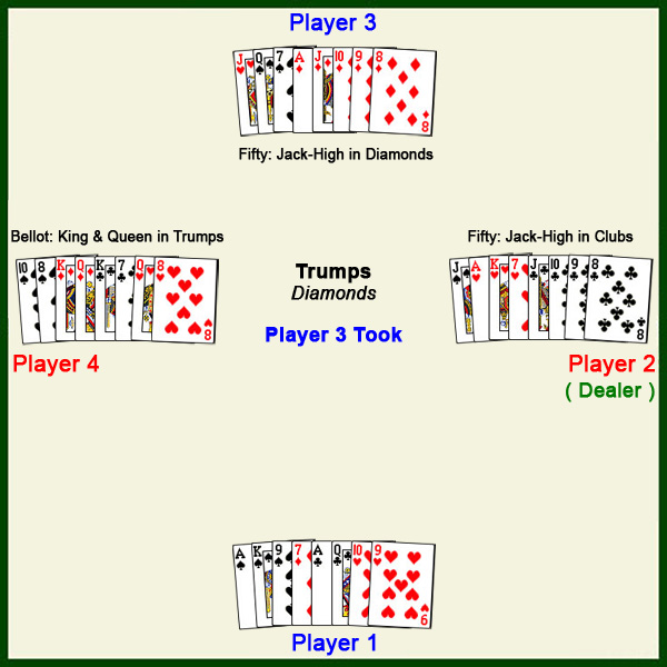Player 4 must verbally announce "Bellot" and "Re-bellot" when playing those 2 cards to receive 20 points.