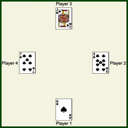 | Rule: When a player Leads Off with Trumps; the other players must Go Over the highest Trump on the table if possible. | ||||